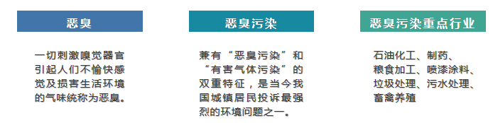 恶臭是各种气味(异味)的总称,大气、水、废弃物中的异味通过空气介质,作用于人的嗅觉思维而被感知;表征它不仅要靠分析数据,还要通过人们的感知思维进行分析和判断。根据国内外有关论述,可将恶臭定义为:凡是能损害人类生活环境、产生令人难以忍受的气味或使人产生不愉快感觉的气体通称恶臭。